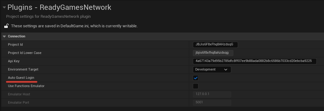 By default, the project is configured to automatically log into a guest account. This feature is enabled in the plugin settings.